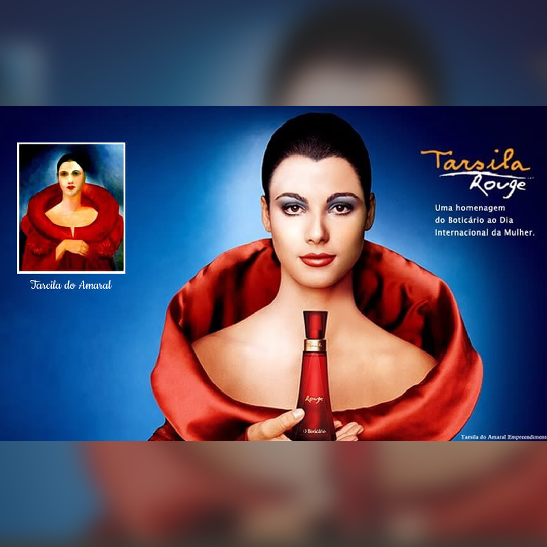 O Manto Vermelho, autorretrato de Tarsila do Amaral, pintado pela própria após um jantar em homenagem a Santos Dumont, em Paris serviu de referência para esta campanha do Boticário.