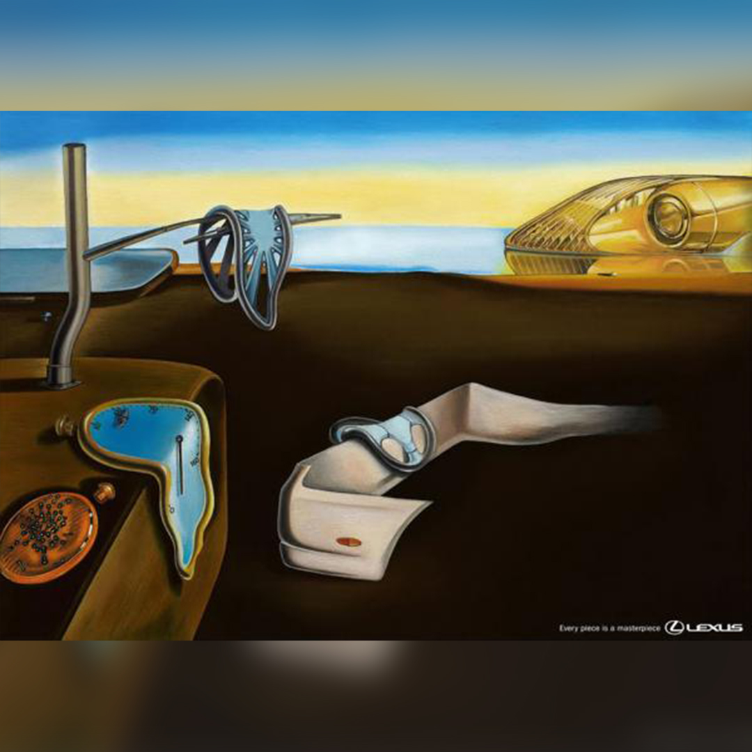 Lexus, Cada peça é uma obra-prima Campanha publicitária para Lexus automóveis feitos por Saatchi & Saatchi Singapura agência de publicidade se apropria da tela de Salvador Dali - “A persistência da memória” de 1931 – e conecta com o título da campanha.