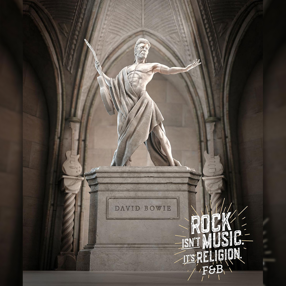 Campanha de Dia do Rock da Fosbury&Brothers. Feita através de softwares avançados de criação e manipulação de imagens, a obra final teve como inspiração a escultura renascentista de David, esculpida por Michelangelo.