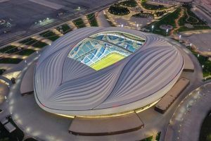 Projeto de Zaha Hadid Architects + AECOM, ele fica na Al Wakrah, uma cidade com pouco mais de 30 mil habitantes que já foi um vilarejo de exploração de pérola. Sendo assim, a ideia do projeto foi um design futurista inspirado nas velas dos tradicionais barcos Dhow, utilizados pelos mergulhadores na época.