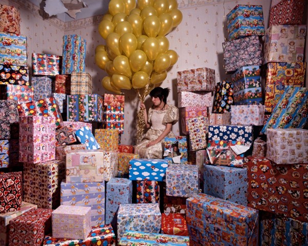 Nesta exposição, a artista explora memórias afetivas por meio de cenários que representam como se fossem uma festa infantil, da qual a própria fotografa participa, como que numa tentativa de autorepresentação.