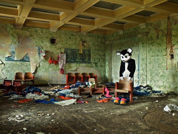Neles, a artista acrescenta elementos que chamam a atenção pelo contraste em relação ao espaço, criando uma relação entre um tempo que passa rápido, ou seja, a infância, e outro que não passa, associado à degradação dos edifícios.