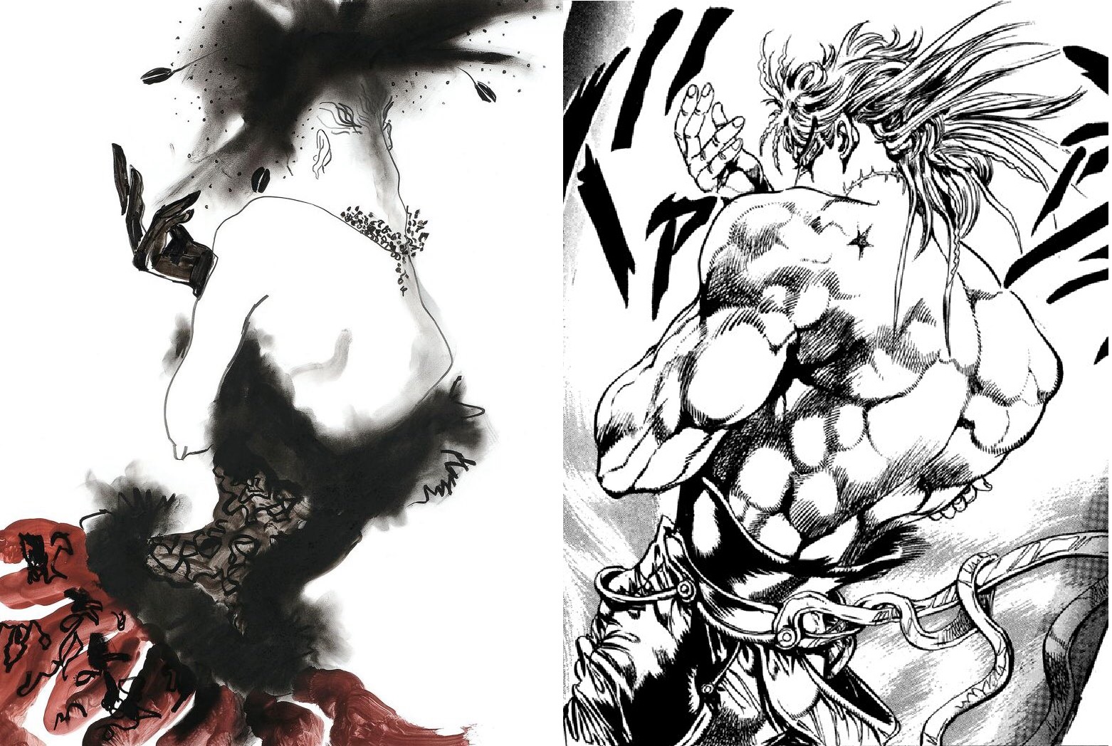 Só que no caso da moda, Araki foi muito além, pois as referências são base do que ficou conhecido como “Jojo Pose”. Uma das marcas do mangá são as poses extravagantes dos protagonistas, mas o que talvez muitos não saibam é que boa parte delas vêm de revistas de moda como Vogue e Haute Couture, além de catálogos da Versace.