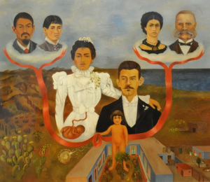 Frida Kahlo é considerada por muitos especialistas como um dos grandes nomes do surrealismo. Ironicamente, ela nunca aceitou tal definição, pois ela dizia que não pintava sonhos, mas sim a própria realidade. Entre suas muitas obras, destacam-se o grande número de autorretratos que ela fazia, muitos deles simbolizando aquilo que ela sentia ou estava passando. Isso começou após um acidente que ela sofreu em 1925, que a deixou um longo período de cama. Como Frida estava entediada e com movimentos limitado, seus pais adaptaram um cavalete e trouxeram material para pintura. Juntamente com isso, instalaram diversos espelhos no quarto, para que ela pudesse se ver de diversos ângulos. Inclusive há uma frase famosa dela para explicar os recorrentes autorretratos: “Pinto a mim mesma porque sou sozinha e porque sou o assunto que conheço melhor” Finalmente, entre eles, temos o tema de nosso artigo de hoje, a obra “Meus Avós, Meus Pais e Eu”.