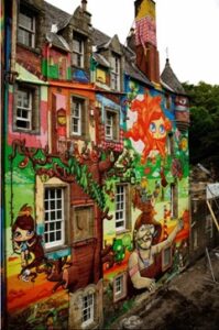 Entre seus muitos trabalhos e projetos, um que merece destaque é o que ela fez junto com OsGemeos e o artista Nunca. Foi a fachada do Castelo Kelburn, em Glasgow, na Escócia que era prevista para ser uma intervenção temporária. Contudo, a obra fez tanto sucesso que acabou se tornando cartão postal da região.