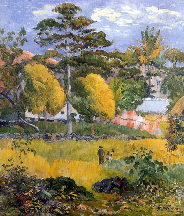 Passeio de família ao sol, pintura de Paul Gauguin que evidencia o estilo diferente se comparado à Van Gogh
