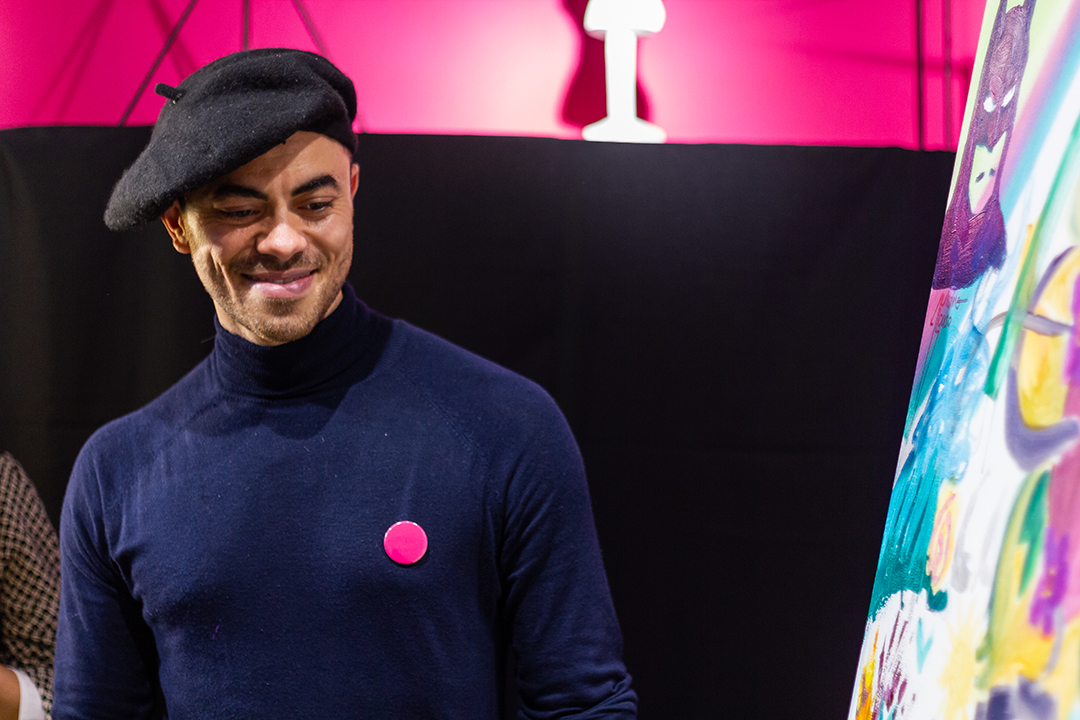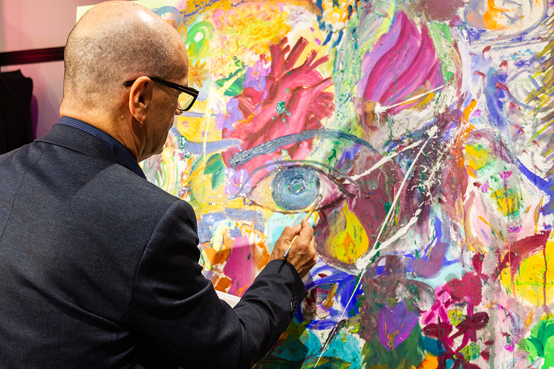 Para tornar o ambiente ainda mais descontraído, convidamos alguns artistas para participar dessa festa, fazendo live painting em tela, parede e murais. Além disso tudo, queríamos testar algo novo, onde todos que estivessem presente na festa pudessem participar de alguma forma, para tal, desenvolvemos o conceito da tela coletiva. A ideia partiu de um artista que é uma das revelações do expressionismo abstrato, Michael Clayton.